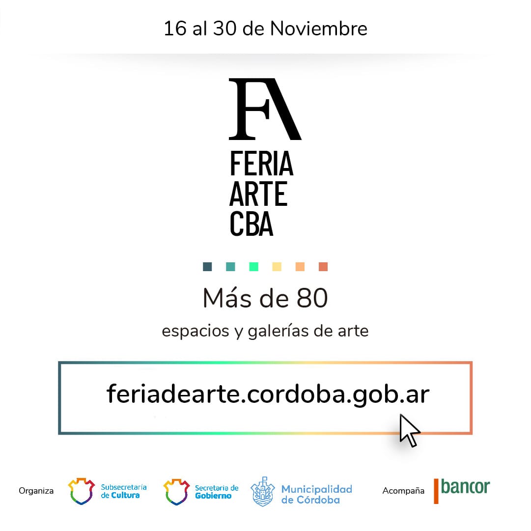 FERIA DE ARTE CÓRDOBA 2020, organizada por la Subsecretaría de Cultura de la Municipalidad de Córdoba, se realizará entre el 16 al 30 de noviembre de 2020, con el auspicio del Banco de la Provincia de Córdoba.
