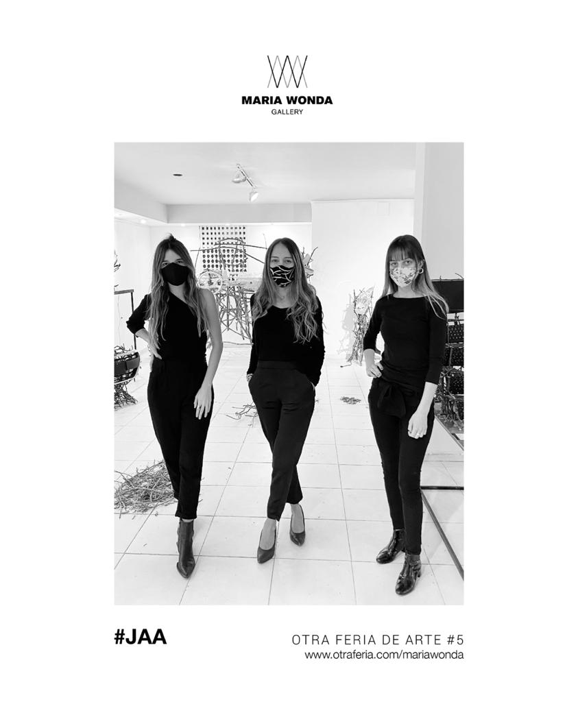 Constanza Delfino y Lucrecia Rey Caro junto a María Wonda Gallery.